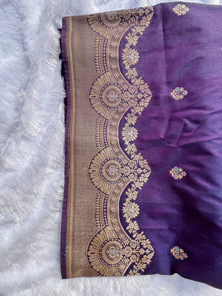 The Borahae Semi Uppada Saree is a quiet expression of emotion and elegance. Woven in a rich purple tone, this saree reflects warmth, depth, and timeless beauty—much like the sentiment of “I Purple You”, symbolising trust and enduring connection.