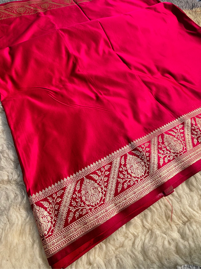 Lalima – Pure Satin Katan Banarasi Saree in Red Cherry – Zaiva
