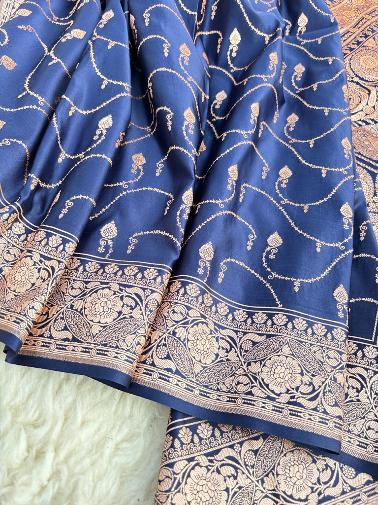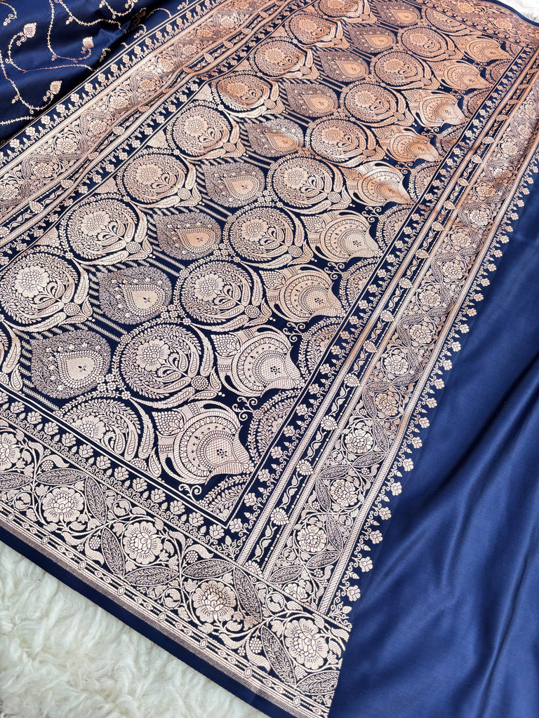 Royal Neel Kamal – Pure Satin Banarasi Saree – Zaiva